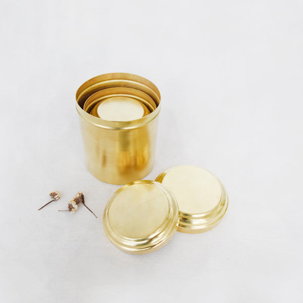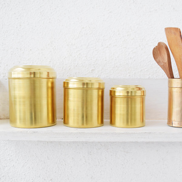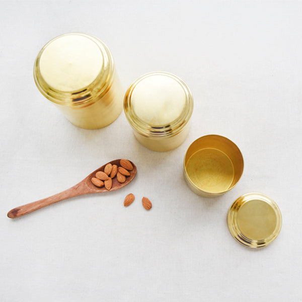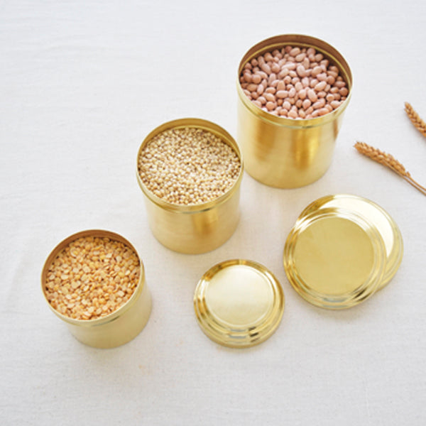 Spun by hand and made of pure brass, these boxes are great for storing grains, pasta, cookies too.